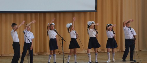 С поздравительными номерами выступили учащиеся Беляевской школы (кл. рук. Балабуркина Л.С., педагог-организатор «ДДТ» Куктеубаева А.Ж.) и Соломоненко А. учащаяся Днепровской школы (рук. Кравцова Л.Н.).